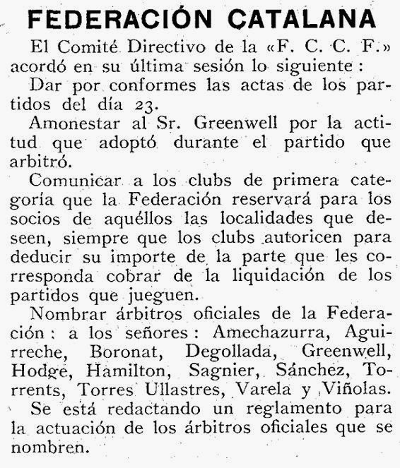 Federación Catalana. El listado fue publicado en la prensa días después.